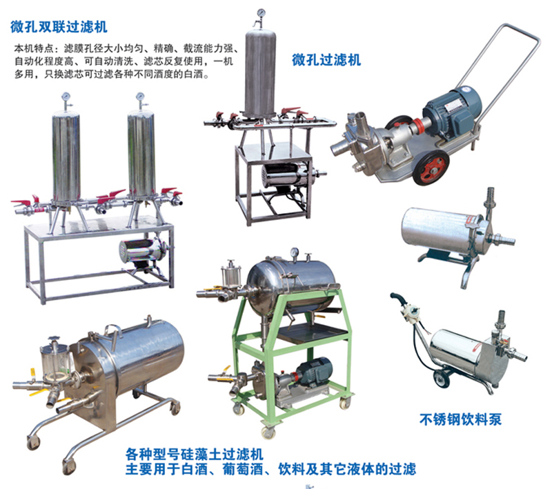 硅藻土過濾機應(yīng)用范圍:硅藻土白酒過濾機適用于白酒、果酒、葡萄酒、保健酒、飲料、糖漿、醬油、醋等液態(tài)制品的澄清過濾。