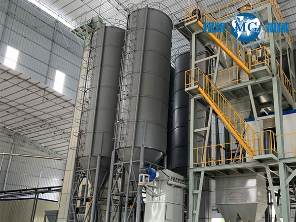 MG全自動干粉砂漿生產線吸收歐洲先進設計理念,整體設計采用塔式布局,管理系統植入新模塊化管理技術,人機對話功能及自動化程度大幅度提升。依據不同的配置,該生產線產量可達3-50萬噸每年。